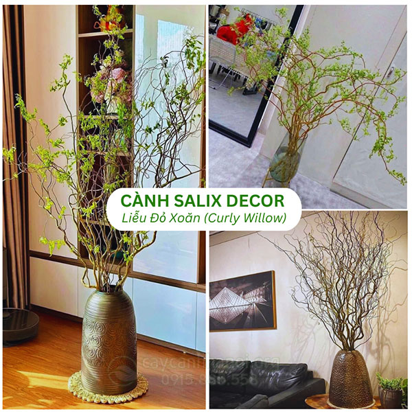 Cành Salix Decor (cành liễu đỏ xoăn) có tên tiếng anh là Curly Willow, là loại cây thuộc họ Liễu, xuất xứ từ Trung Quốc. Cành Salix có dáng cành dài, trung bình từ 1,2 – 1,8m, cành dai và mềm mại, chúng thường có dáng dễ uốn cong, tạo hình, lá nhỏ, màu đỏ, sau khi cành liễu được cấp ẩm đủ lá sẽ ra đều trông rất thú vị.