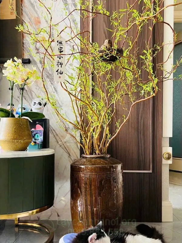 - Cành salix khô trang trí nội thất: Với một bình cao kết hợp với các cành liễu xoăn khô đủ để tạo điểm nhấn nghệ thuật trong phòng khách, văn phòng hoặc sảnh lễ tân.