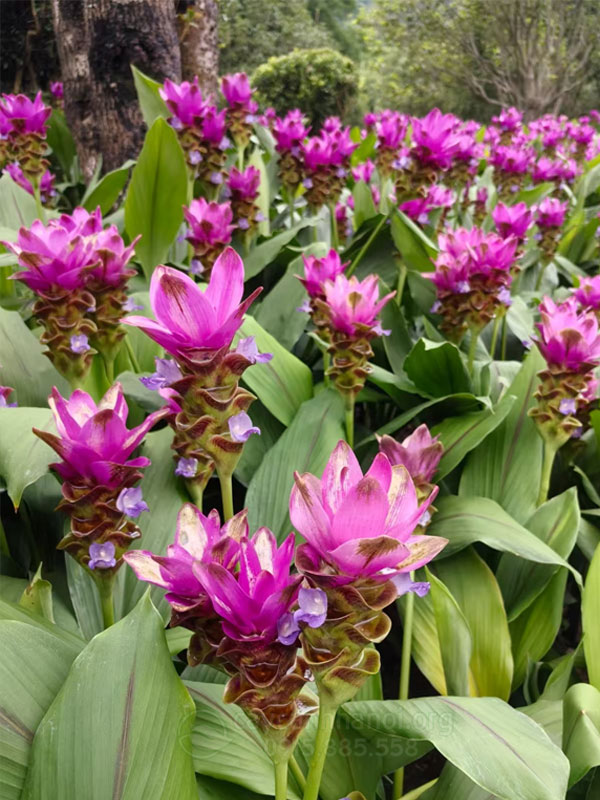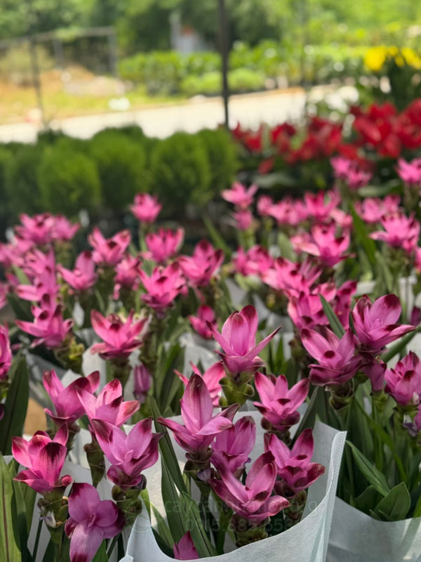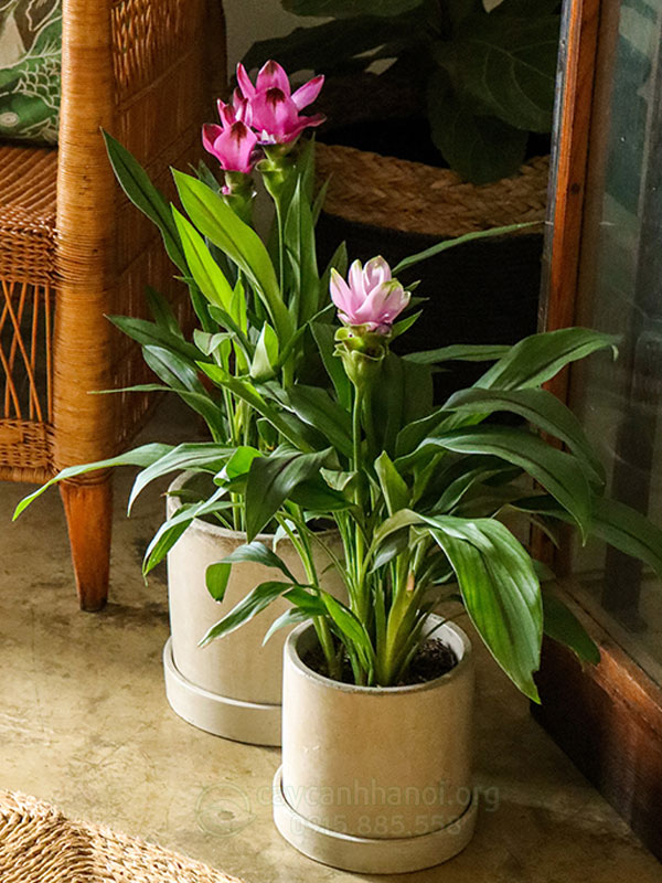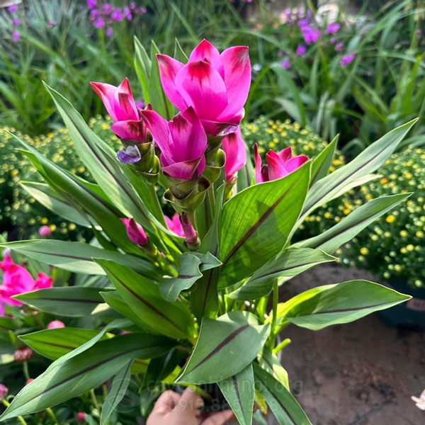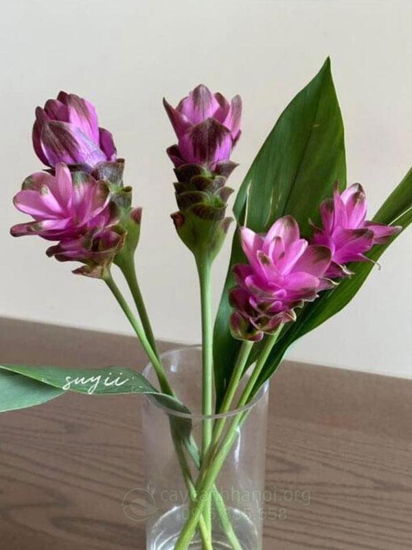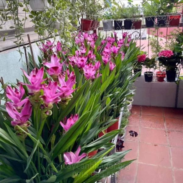 - Cây hoa Nghệ Thái (Curcuma alismatifolia Thái Lan): Dáng hoa nhỏ nhắn, thanh mảnh, màu hồng tím rực rỡ.