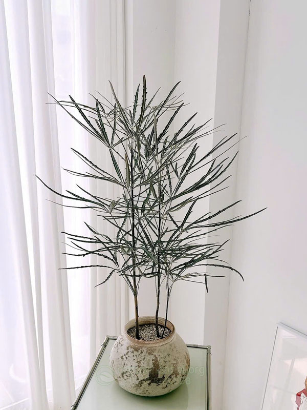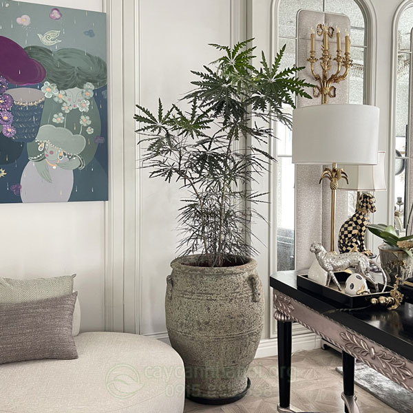 Điểm nổi bật chính là dáng lá kim đen thon dài, viền lá mảnh mai và thân cây vươn thẳng đầy uyển chuyển, cây Khổng Tước (Plerandra elegantissima) mang đến vẻ đẹp thanh lịch, hiện đại và sang trọng cho mọi không gian sống. Khôn chỉ cây khổng tước chịu bóng, dễ sống mà còn là biểu tượng của may mắn, tài lộc và thịnh vượng trong phong thủy.
