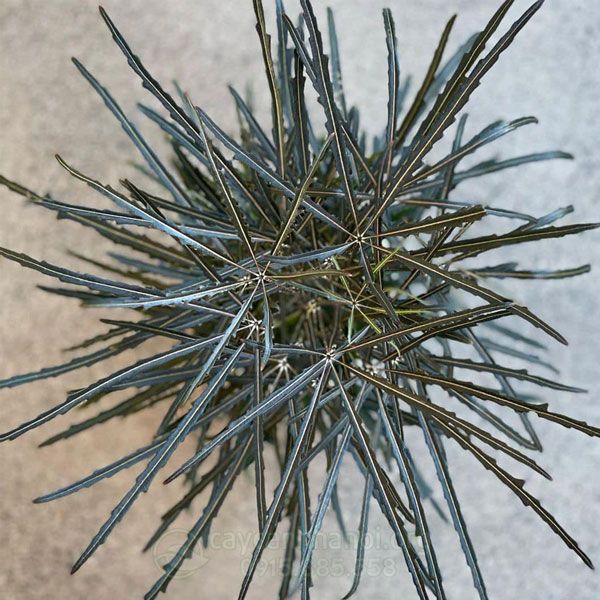 Cây Khổng Tước (Schefflera elegantissima) là cây cảnh lá kim đen nổi bật với thân thẳng, dáng thanh mảnh và tán lá xòe tròn như lông chim công.