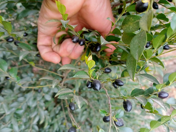 Quả Tùng Đen nhỏ, khi non sẽ có màu xanh bóng, đến khi chín chuyển sang màu đen, có lẽ vì vậy mà mọi người còn gọi là cây Cứt Chuột.