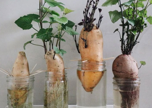 - Khoai lang trồng thủy sinh không ra rễ thường là do các nguyên nhân như: Củ để ngược đầu, nước quá lạnh, củ già hoặc đã bị hỏng