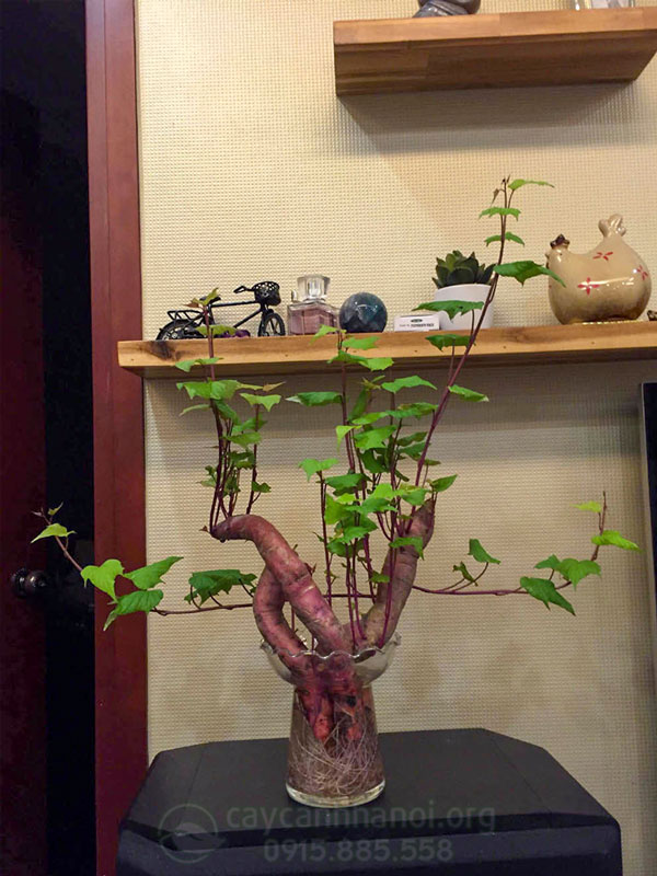 Trong vài năm gần đây, khoai lang bonsai và khoai lang cảnh nổi lên như một xu hướng mới trong trang trí không gian sống. Không cần đất, không chiếm diện tích, dễ trồng và mang vẻ đẹp mộc mạc nhưng độc đáo, cây khoai lang trong lọ thủy tinh nhanh chóng được ưa chuộng để trang trí bàn làm việc bằng khoai lang, kệ sách, quán cà phê hay văn phòng hiện đại.