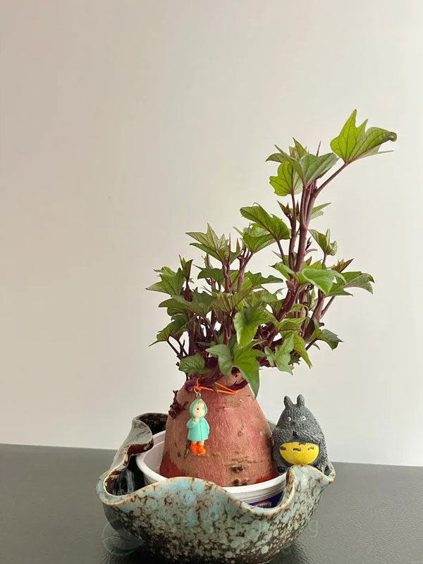 - Trang trí quán cà phê, homestay: Khoai lang leo, khoai lang bonsai và tiểu cảnh khoai lang mini mang vẻ đẹp mộc mạc, gần gũi.