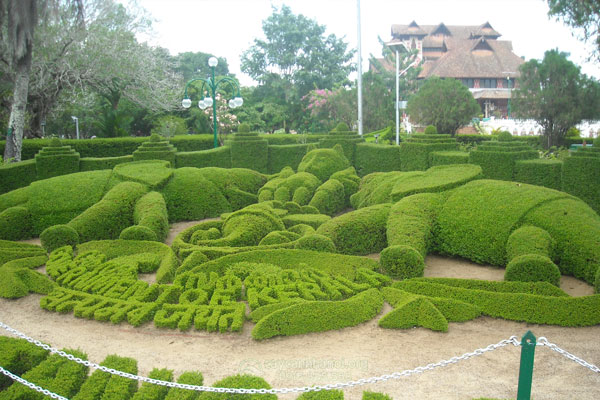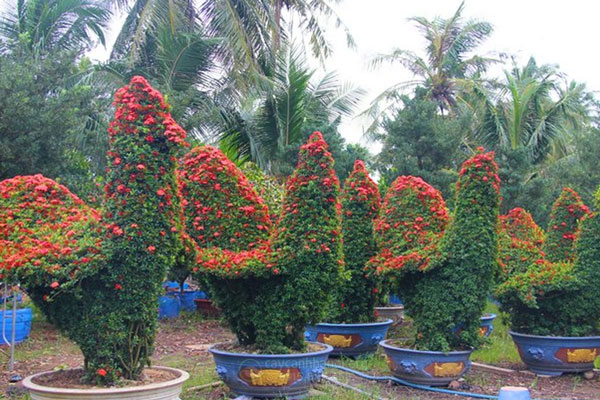 Nổi bật với Topiary hình thú: Cây hình con hươu, hình voi, hình chim hạc, hình 12 con giáp. Đây là thiên đường của cây kiểng hình thú (Kiểng thú) hiện đại.