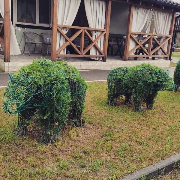 - Topiary hình thú – Kiểng thú là điểm nhấn nổi bật trong các khu vườn lớn thường được ưa chuộng trong trang trí cổng biệt thự bằng cây cắt tỉa, khu du lịch, công viên. Cây kiểng hình thú (Kiểng thú) nổi bật như: hình 12 con giáp, hình con voi, hình chim hạc, cây hình con hươu…