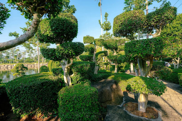 - Dù rộng lớn, nơi đây có những khu vực cây cảnh được cắt tỉa công phu, thể hiện sự sáng tạo.